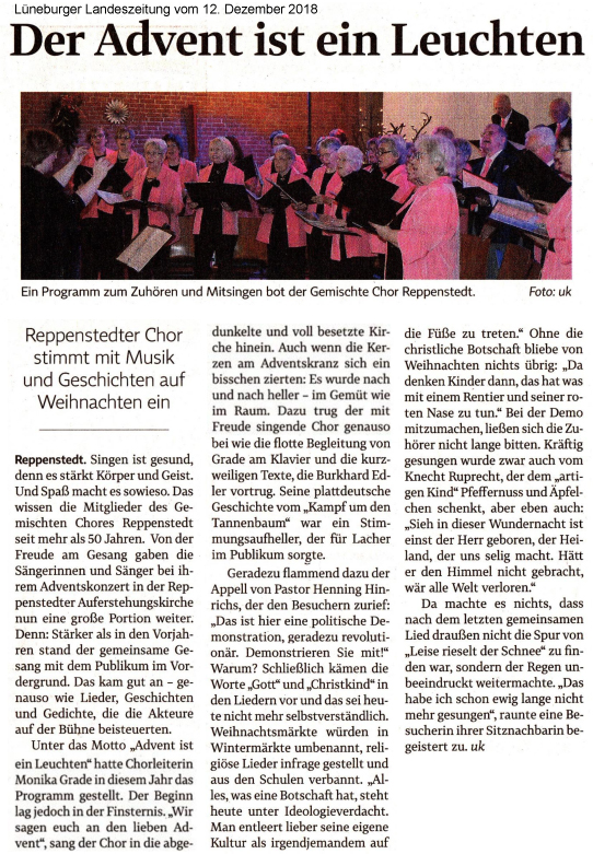 Lüneburger Landeszeitung vom 15. Dezember 2017